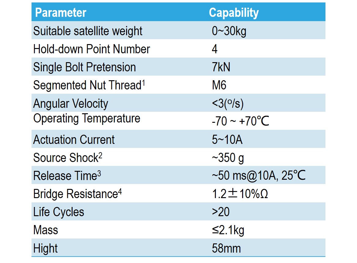 The Link-Easy Aerospace’s Satellite Separation Mechanism (SSM series) is a four-point microsatellite launch adapter, suitable for a wide range of satellite configurations and weights (30~150kg). Four separation nuts (Model: SBN-8KN-S-BM, SBN-15KN-S-BM, and SBN-25KN-BM) are used in the separation mechanism to achieve the lock and release function. The preload of single separation nut is 8~15kN, which ensures high rigidity and reliable lock; Four separation springs are used to push the satellite away synchronous.
